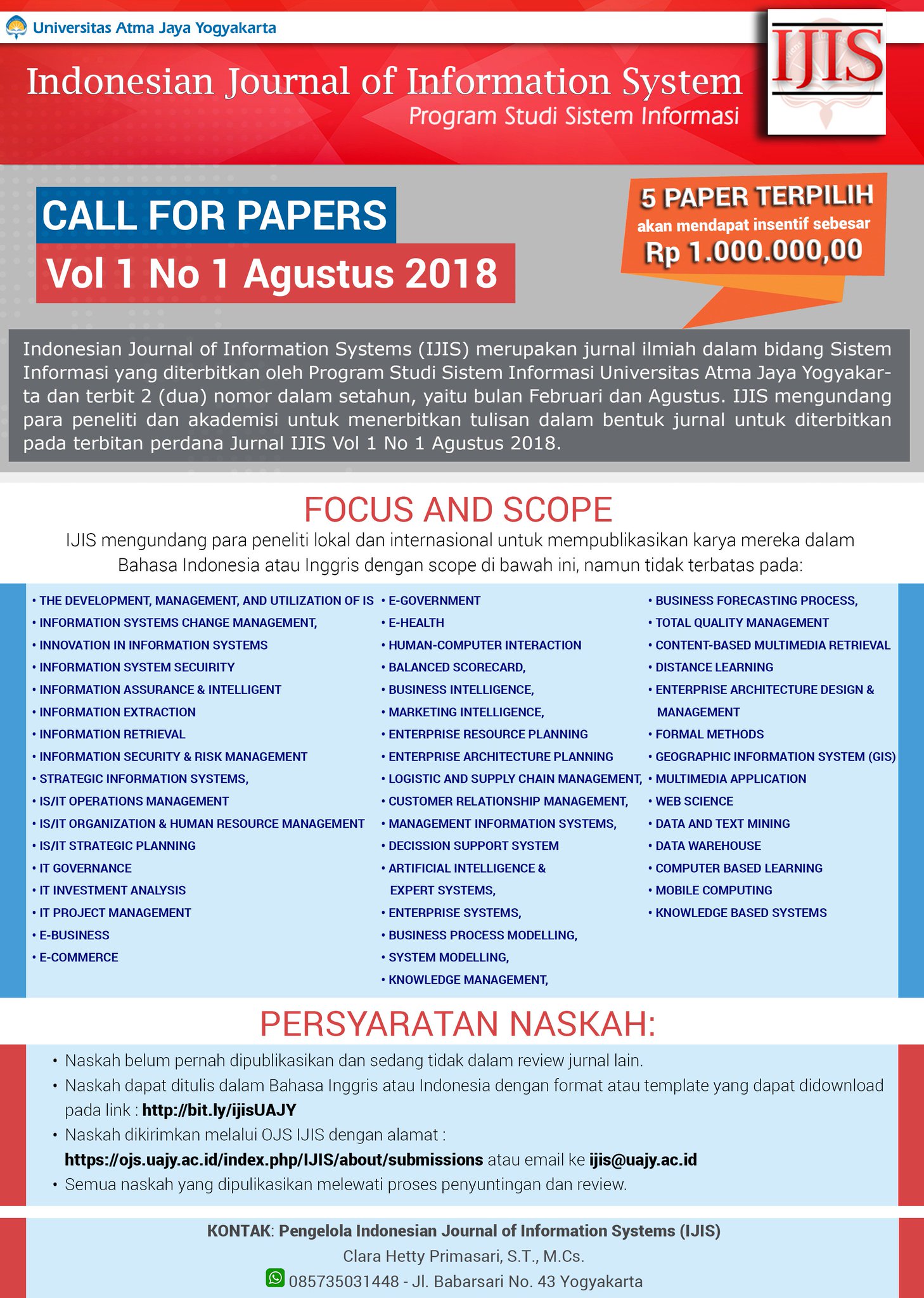 Si Uajy على تويتر Indonesian Journal Of Information Systems Ijis Merupakan Jurnal Ilmiah Dlm Bidang Sistem Informasi Yg Diterbitkan Oleh Program Studi Sistem Informasi Uajy Ijis Mengundang Peneliti Lokal Internasional Untuk Mempublikasikan Karya