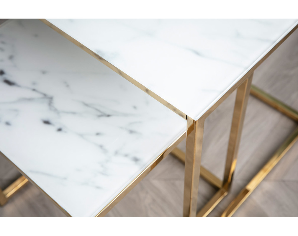 Lot De 2 Tables Gigogne Carrees Style Art Deco Avec Un Plateau Marbre Blanc Mobilier Moss